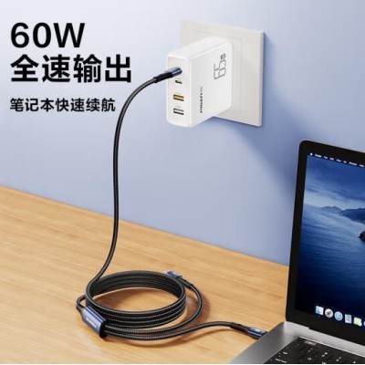 双Type-C数据线二合一PD60W充电线一拖二车载适用苹果iPhone16pro/15/14手机华为70小米笔记本ipad