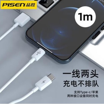 双Type-C数据线二合一PD60W充电线一拖二车载适用苹果iPhone16pro/15/14手机华为70小米笔记本ipad
