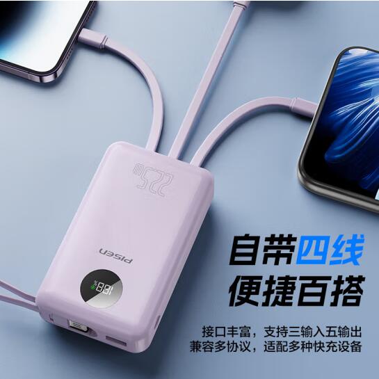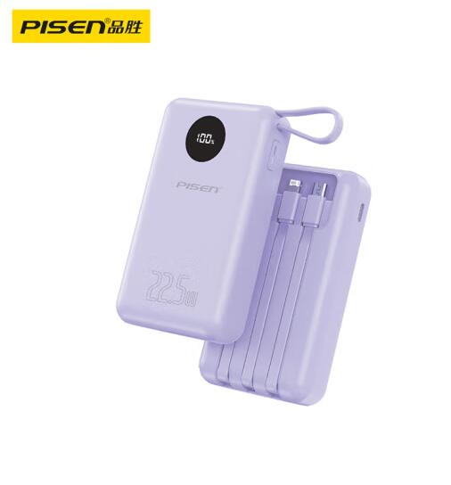 充电宝自带四线22.5W快充小巧便携宿舍移动电源20000毫安大容量可上飞机适用苹果16小米华为P70紫